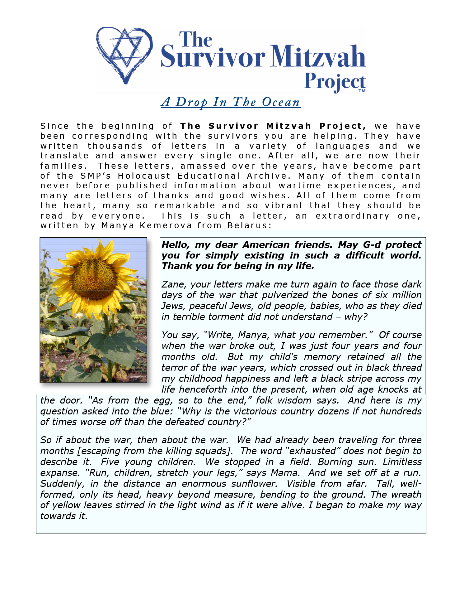 Survivor Stories – Newsletter Rita Geinikhovna Letter of the Month Gallery Survivor Stories – Newsletter Rita Geinikhovna Letter of the Month